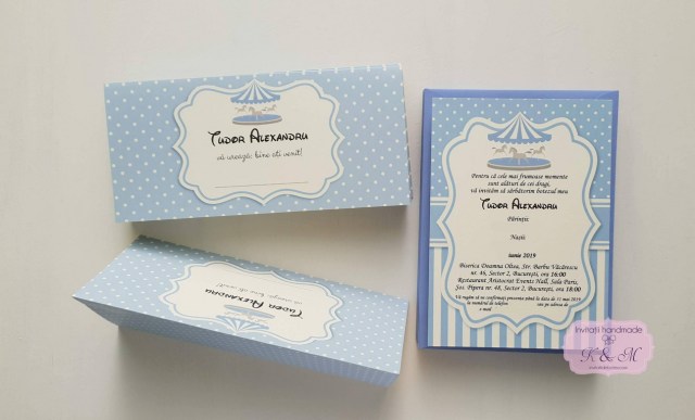 Invitatii de botez si plicuri bani cu carusel bleu, cod 239 05/05/201926/02/2024