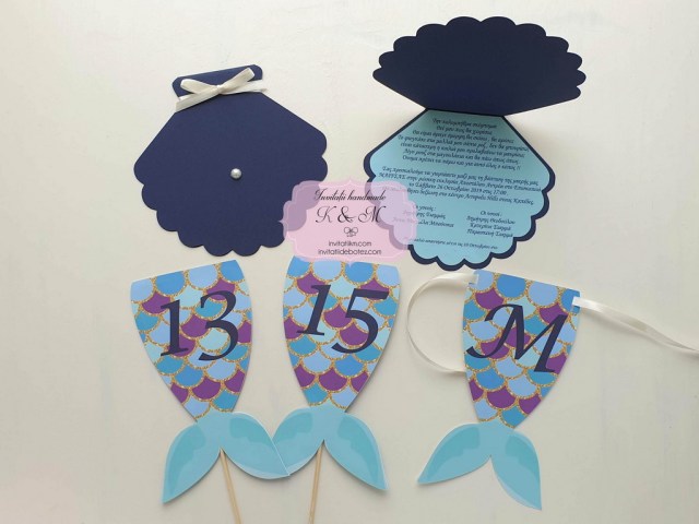 Invitatii de botez, numere masa, ghirlanda cu tema marina, sirene si scoici 17/09/201926/02/2024