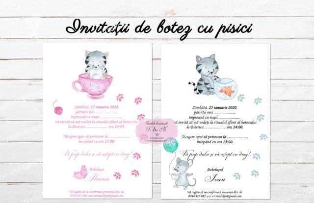 Invitatii de botez cu pisicute cod 266 19/01/202026/02/2024