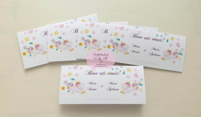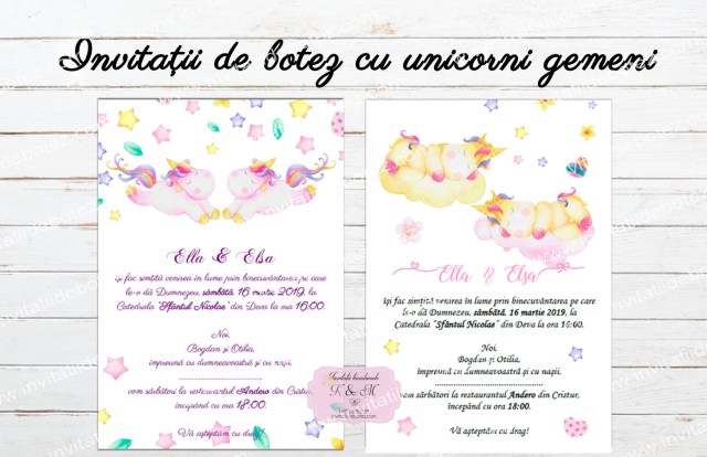 Invitatii de botez cu unicorni gemeni cod 277 19/01/202026/02/2024
