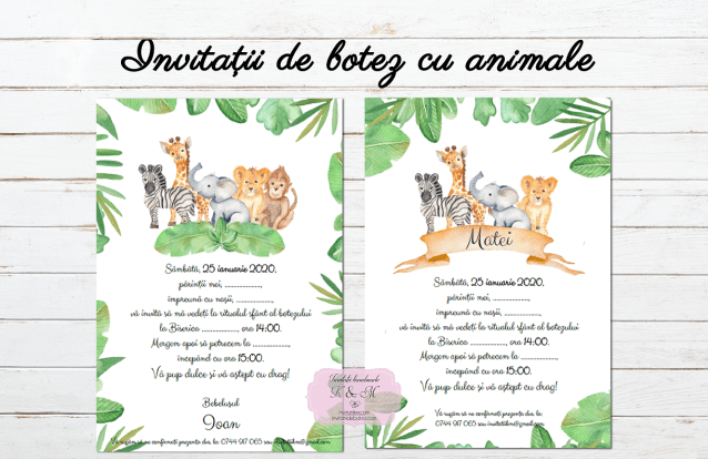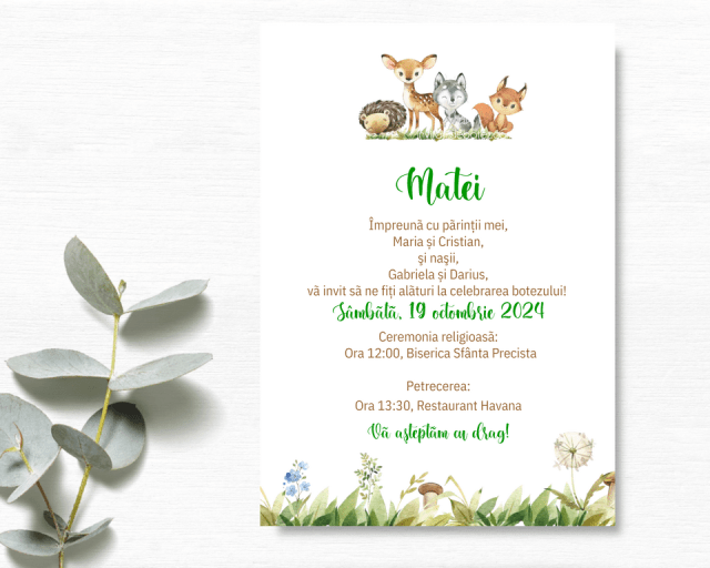 Invitatie de botez online cu animalute din padure pentru baiat sau fetita 03/03/202405/02/2025