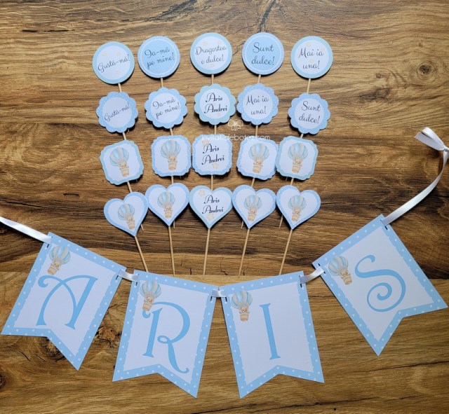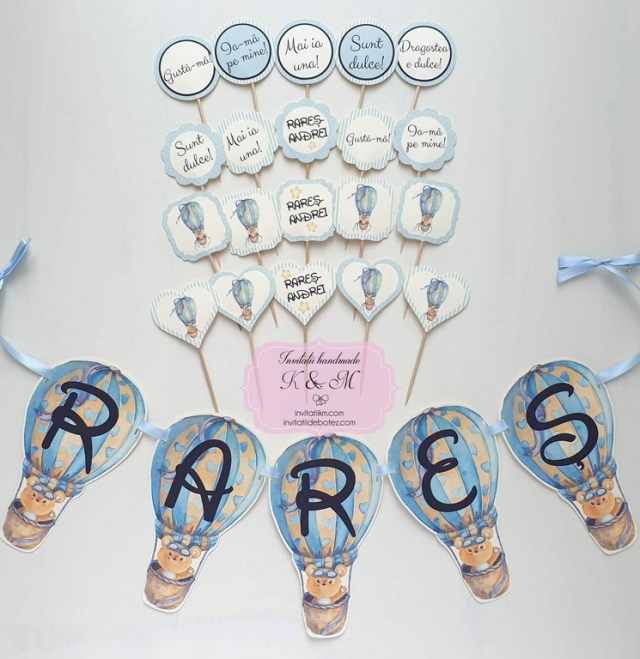 Ghirlanda nume baiat cu ursulet si balon aer cald si mesaje candy bar 15/06/2024