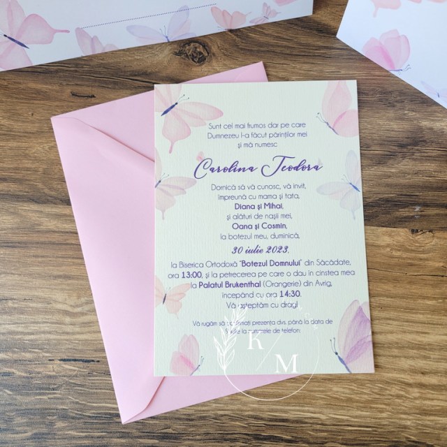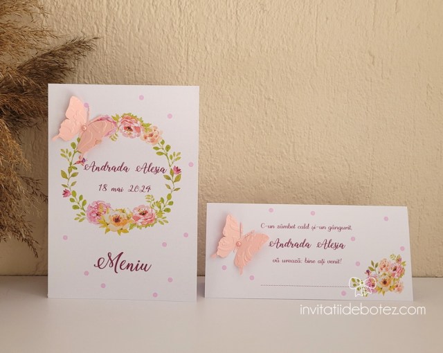 Invitatii, meniu, plic bani de botez cu fluturi roz antic, cod 226 31/10/201911/03/2024