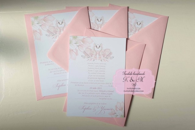 Invitatii, plicuri bani, litere ghirlanda cu zane roz prafuit cod 224 17/09/201926/02/2024