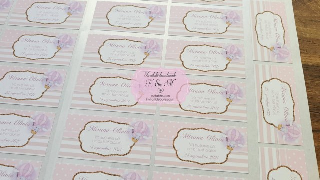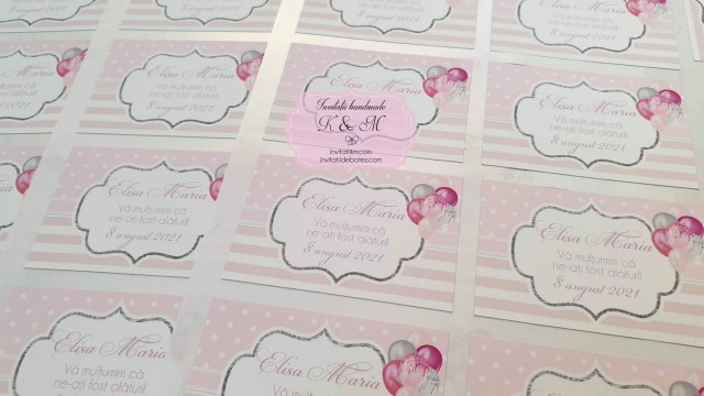 Stickere, etichete autocolante pentru marturii de botez balon aer cald roz 15/06/2024