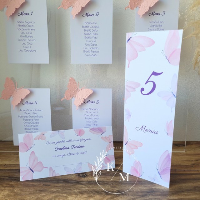Meniuri rotunde cu fluturasi roz si mov pentru botez 23/09/2024