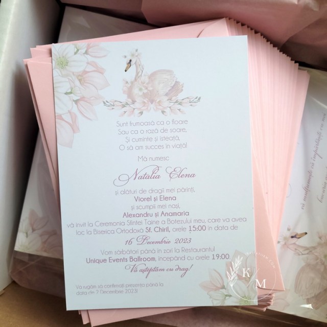 Invitatii de botez cu lebada/lebede cod 265 19/01/202028/01/2025