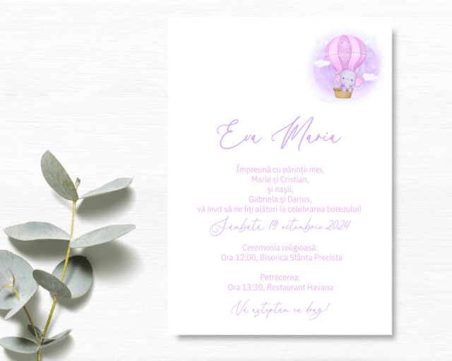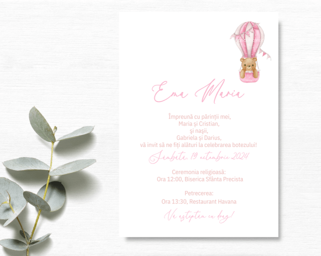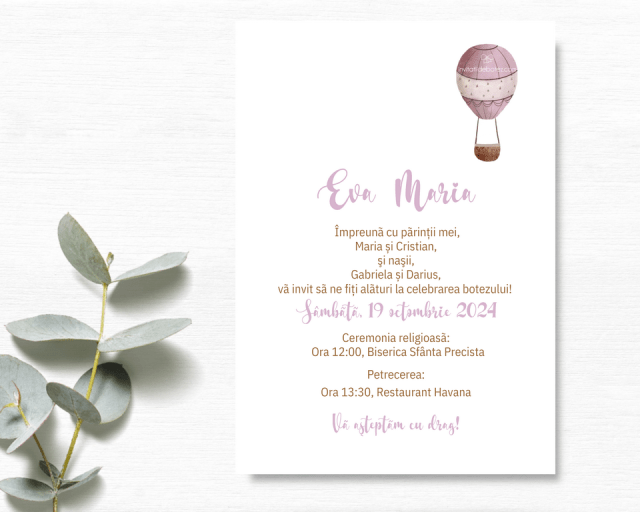 Invitatii de botez online cu balon aer cald pentru fetite 02/03/202405/02/2025