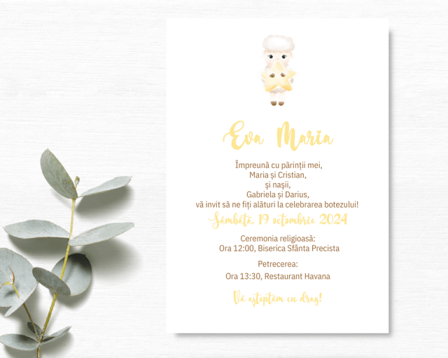 Invitatie digitala de botez cu oita si steluta pentru fetita 28/02/202405/02/2025