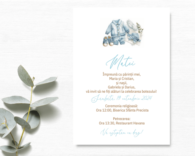 Invitatie de botez online cu hainute pentru baiat 01/03/202405/02/2025