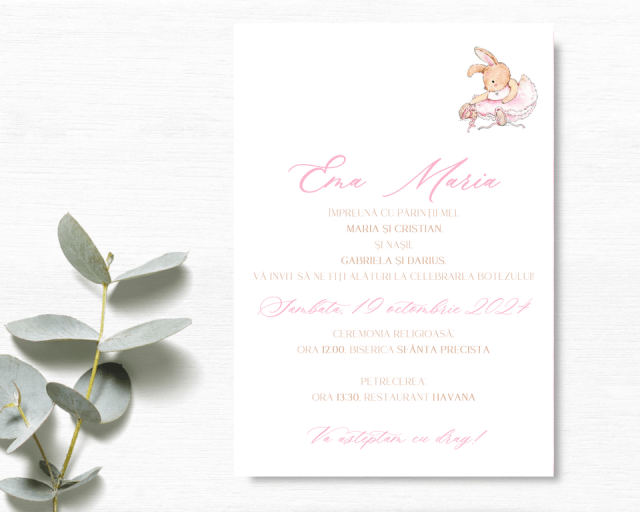 Invitatie de botez digitala cu balerina iepuras pentru fetita 04/03/202405/02/2025