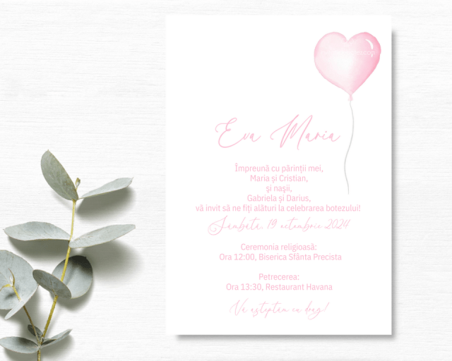 Invitatie digitala de botez cu balon inimioara pentru fetita 01/03/202405/02/2025