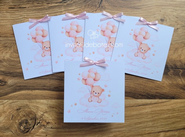 Invitatie de botez online cu ursulet si baloane pentru fetita 05/03/202405/02/2025