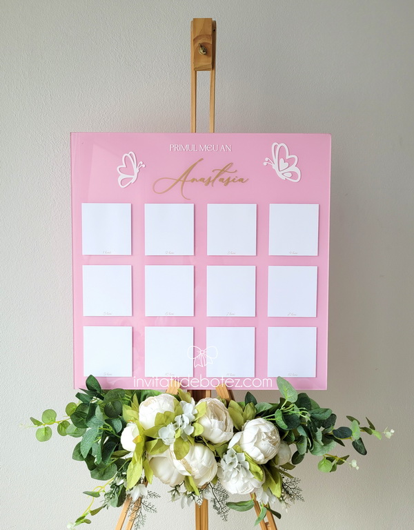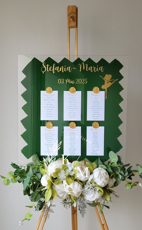 Panou cu asezarea invitatilor la mese pentru botez cu balerina 04/06/202504/06/2025