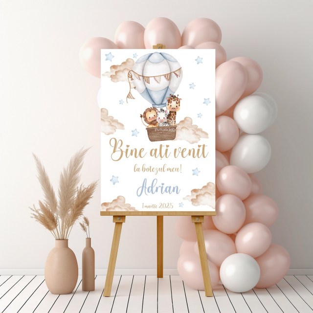 Panou Bun Venit la Botez cu balon cu aer cald si animalute 18/02/202504/06/2025