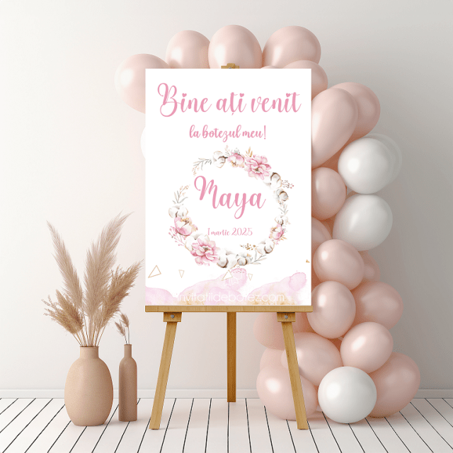 Panou Bun Venit Botez cu flori pastelate 18/02/2025