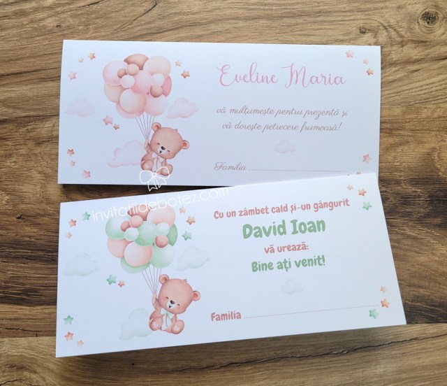Invitatii de botez si plicuri bani cu ursuleti gemeni si balon cu aer cald cod 248 22/10/201904/02/2025