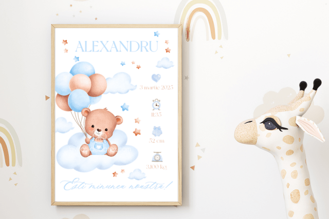 Tablou nou-nascut cu ursulet pentru baietel 06/03/2025