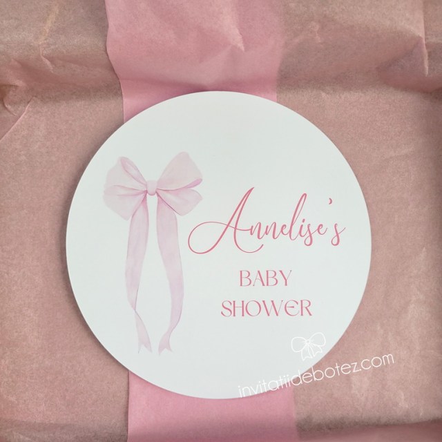 Meniuri rotunde pentru botez cu fundita roz 04/06/2025