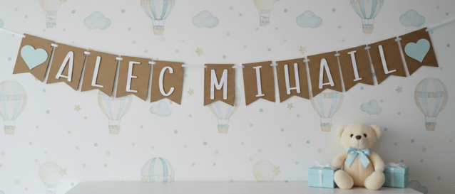 Ghirlanda cu nume “balon cu aer cald” pentru baietel 26/11/2025