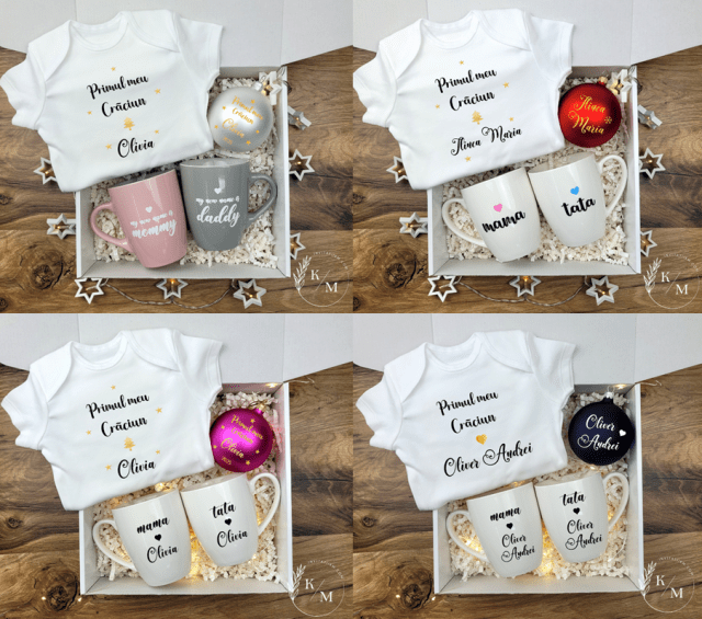 Giftbox nou-nascut cu body, cani si glob de Craciun cu nume 02/10/202409/11/2025