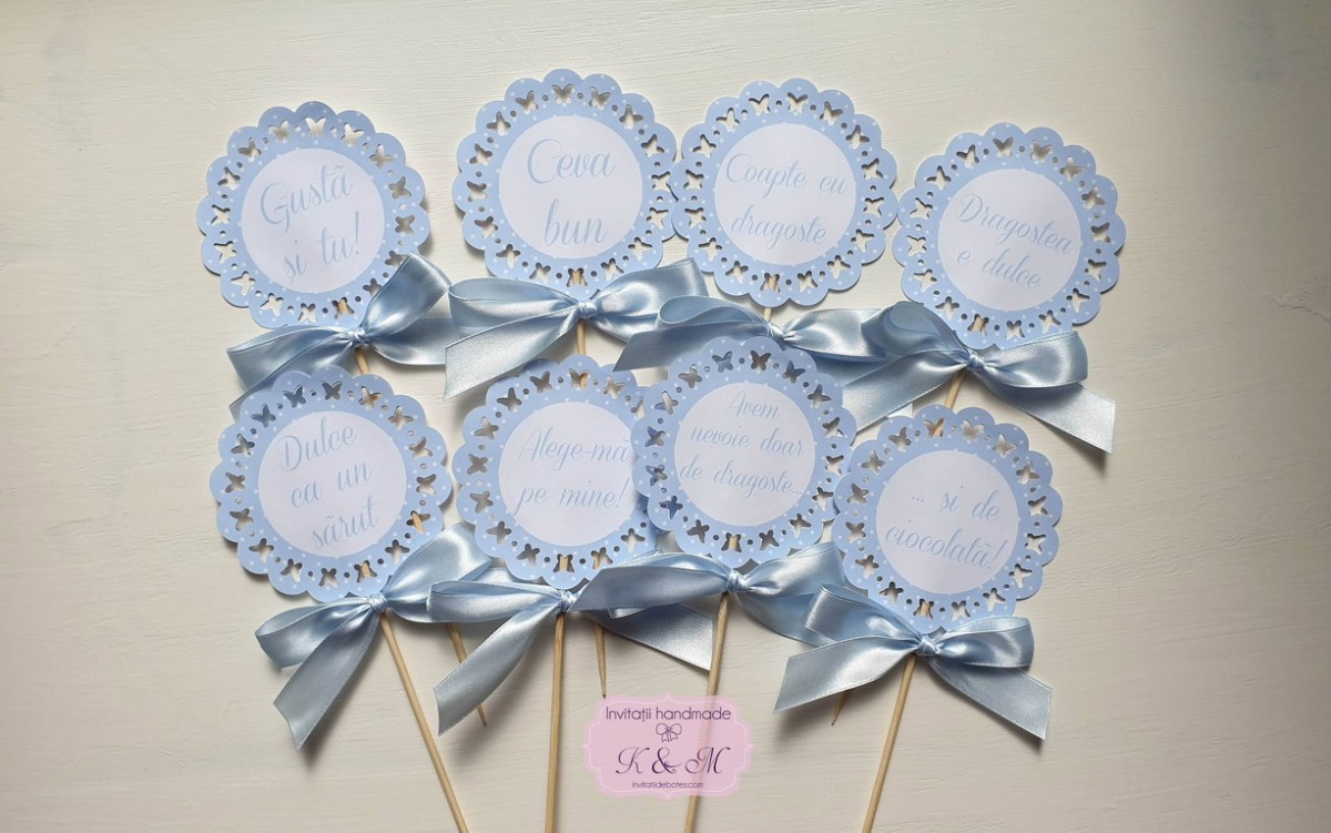 Produsele pot fi personalizate in functie de preferinte pentru a se potrivi cat mai bine cu tematica evenimentului. In acelasi stil se poate realiza si restul papetariei.