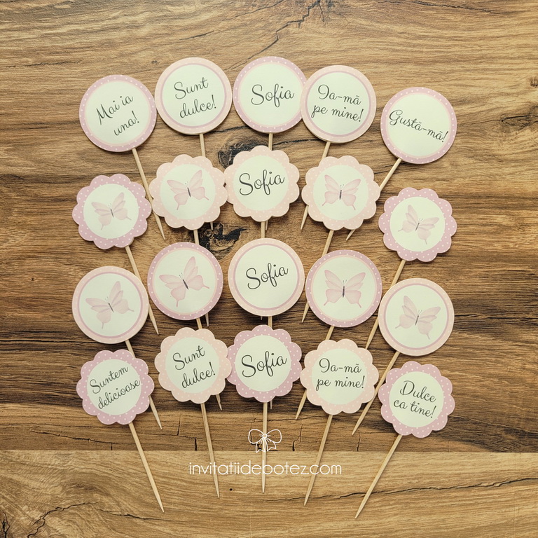 Mesaje/propsuri mici pentru candy bar cu balon cu fluturi