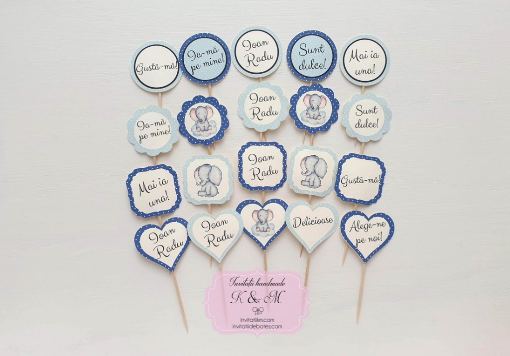 Mesaje/propsuri mici pentru candy bar cu elefant