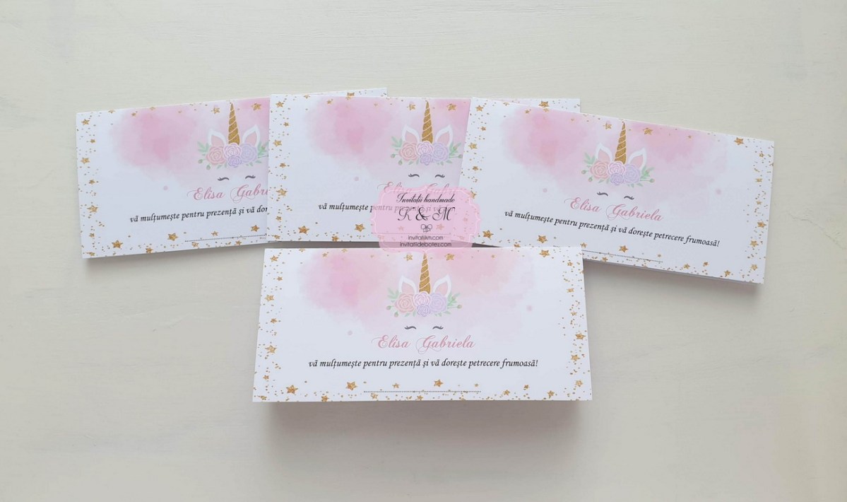 Plicuri de bani/carduri de asezare handmade cu unicorn si stelute