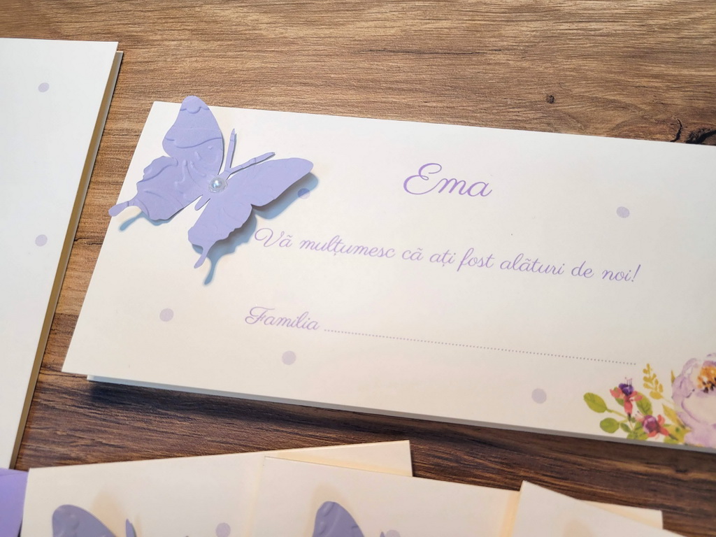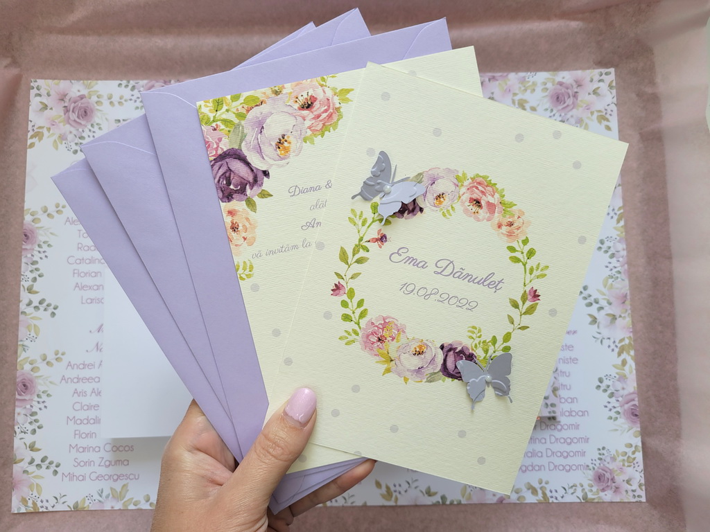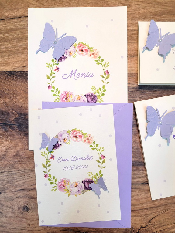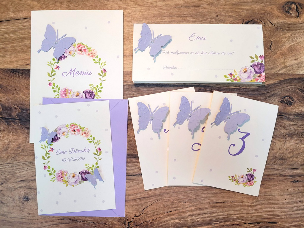 Produsele pot fi personalizate in functie de preferinte pentru a se potrivi cat mai bine cu tematica evenimentului. In acelasi stil se poate realiza si restul papetariei.