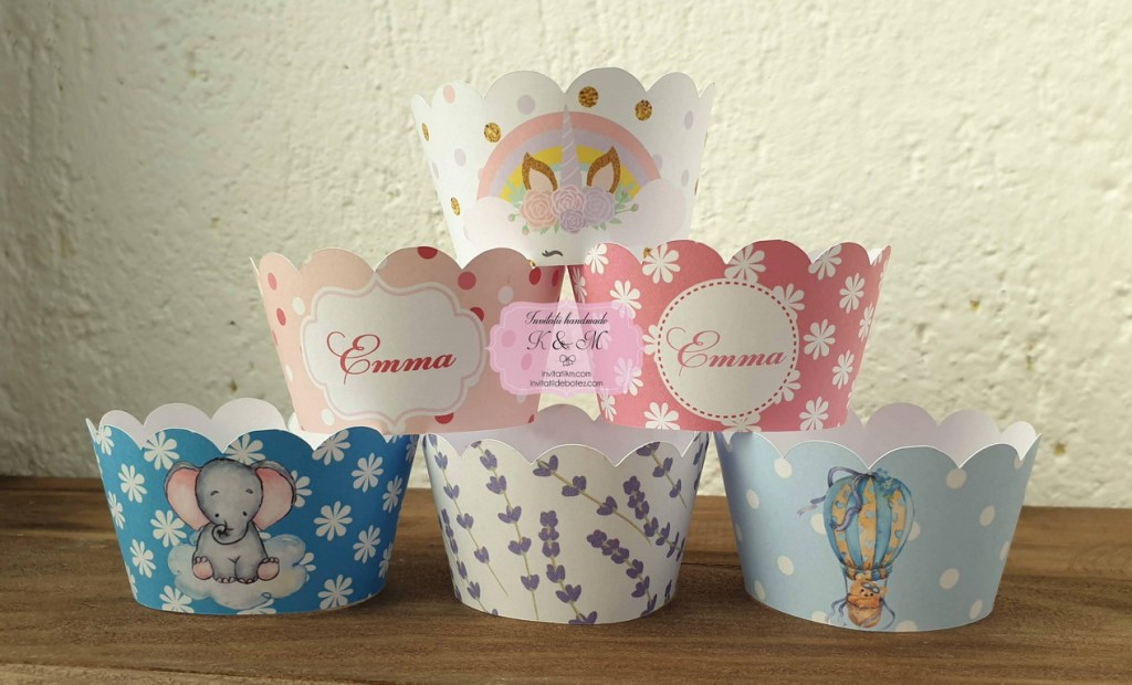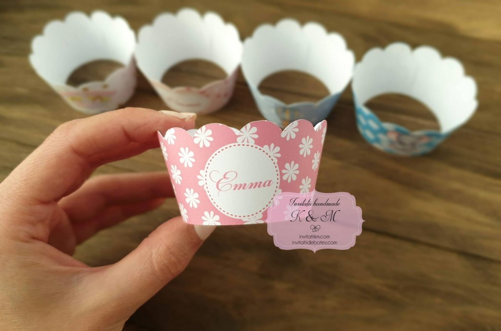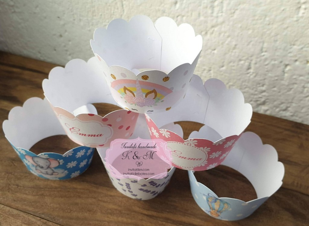 Hartiute/invelitori pentru briose/cupcakes pentru botez/candy bar. Se pot personaliza in functie de tematica botezului.