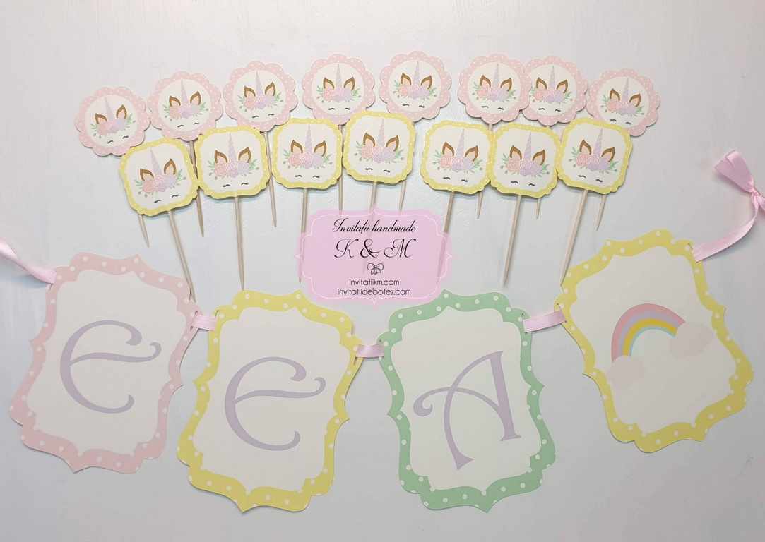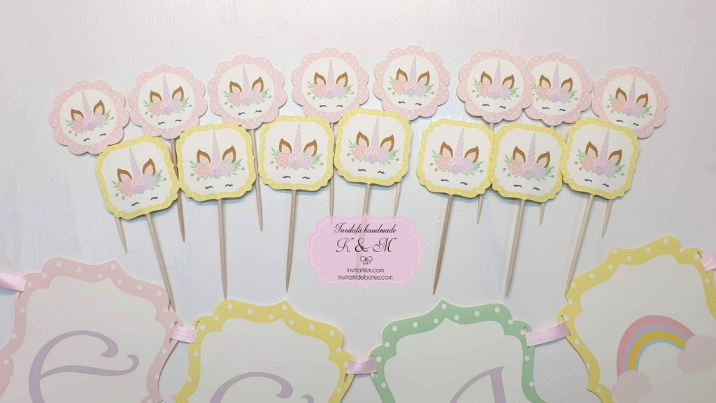 Mesaje/propsuri mici pentru candy bar si litere ghirlanda cu unicorni si curcubee