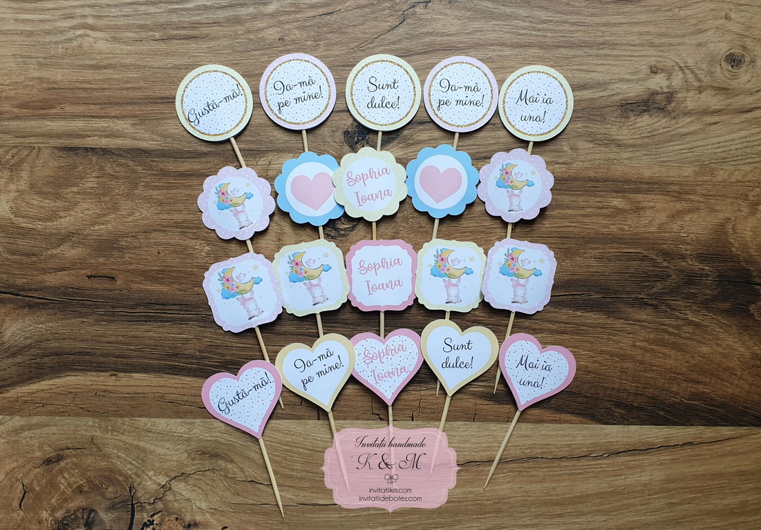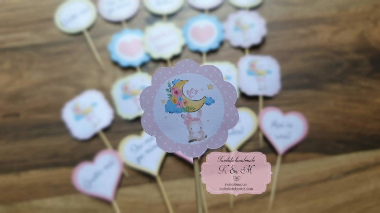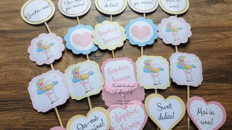Mesaje/propsuri mici pentru candy bar cu iepuras, luna si stelute