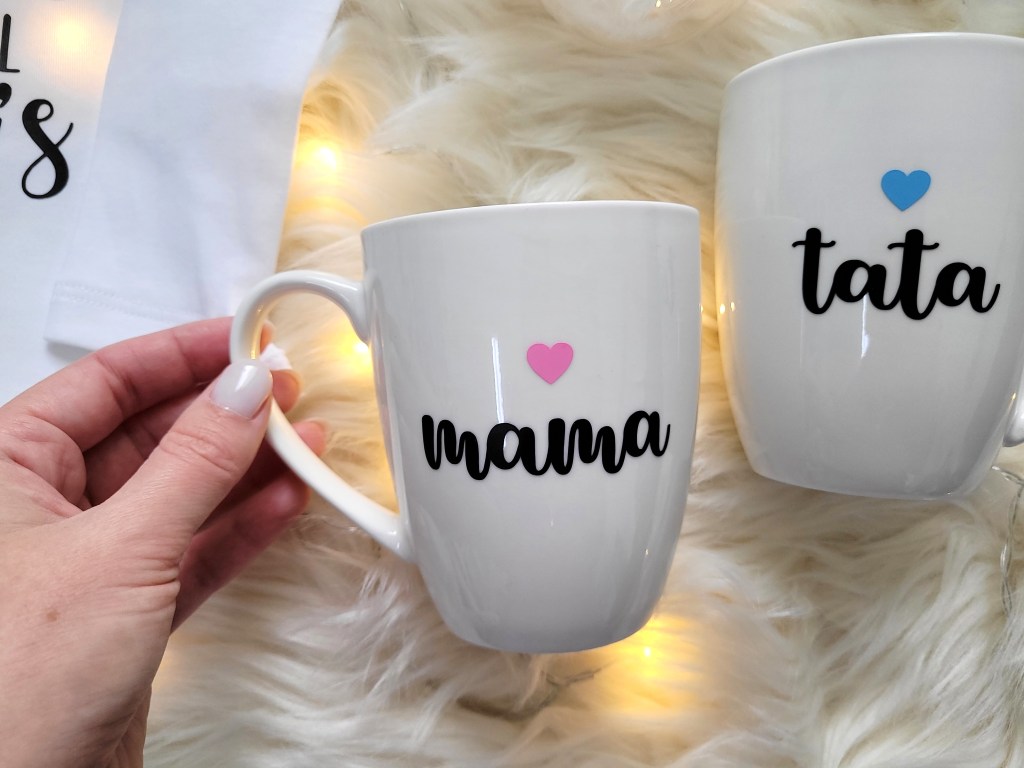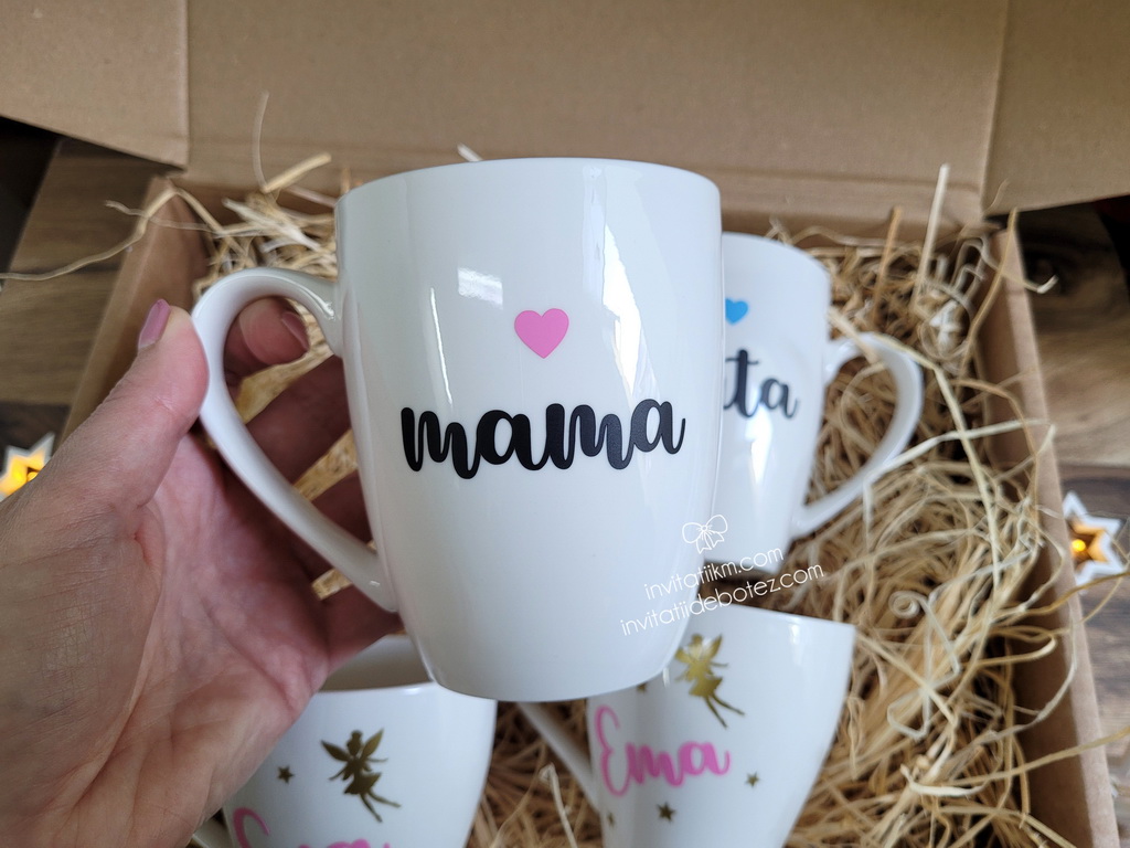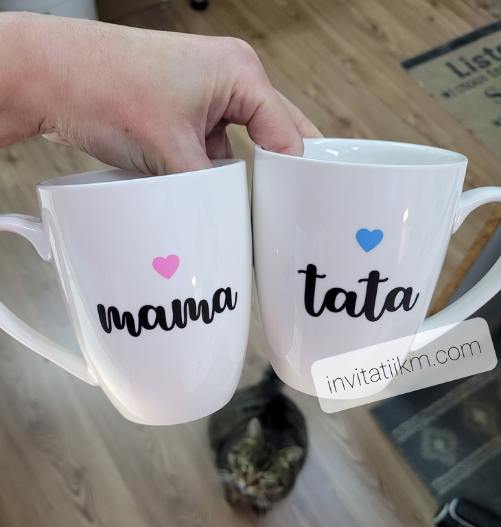 - doua cani din ceramica de 200-300 ml, in functie de culoare/stoc, personalizate cu vinil
