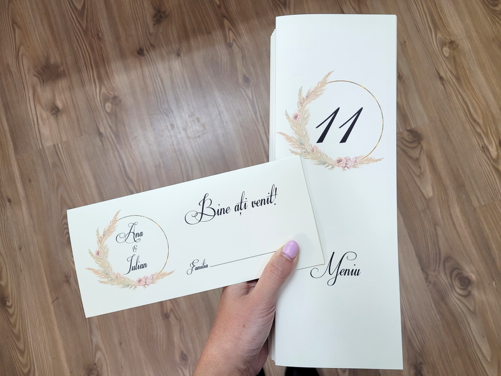 Produsele pot fi personalizate in functie de preferinte pentru a se potrivi cat mai bine cu tematica evenimentului. In acelasi stil se poate realiza si restul papetariei.