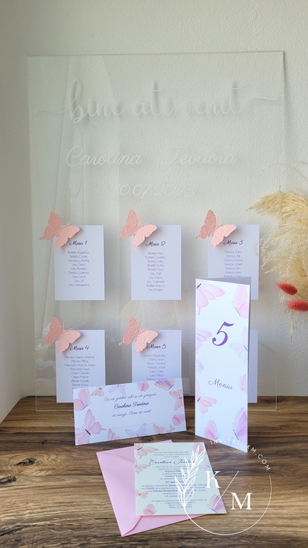 Produsele pot fi personalizate in functie de preferinte pentru a se potrivi cat mai bine cu tematica evenimentului. In acelasi stil se poate realiza si restul papetariei.