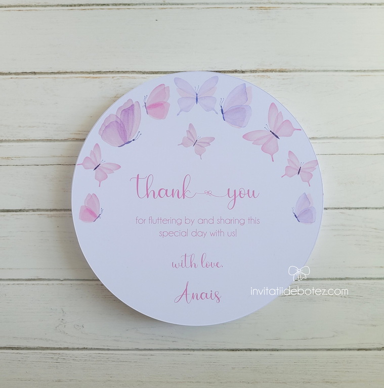 Meniu individual rotund pentru nunta/botez realizat din carton. Meniul poate fi asezat pe fiecare farfurie