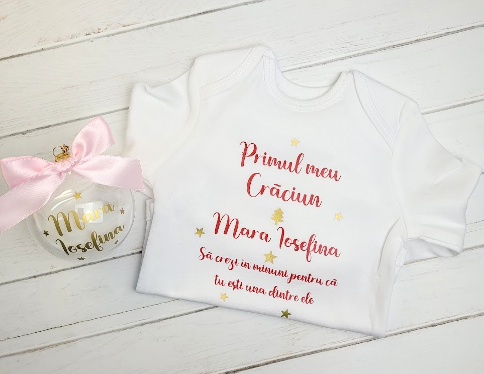 - un body din bumbac 100%, marimea necesara (de la 56 in sus) personalizat cu folie ce indeplineste standardul de toxicitate Oeko-Tex Standard 100, clasa I, perfecta pentru imprimarea hainutelor bebelusilor