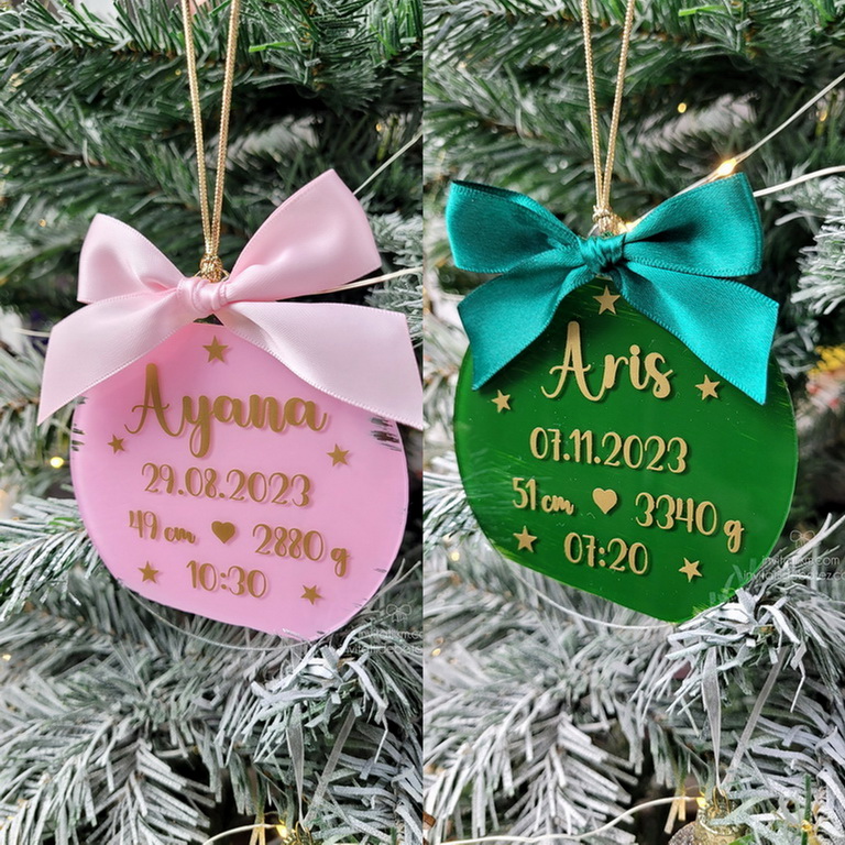 Ornamente de Craciun personalizate cu nume si detaliile nasterii bebelusului