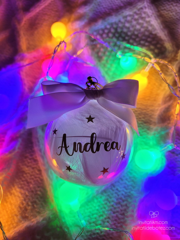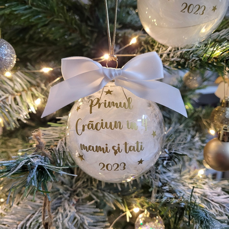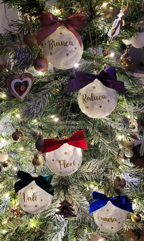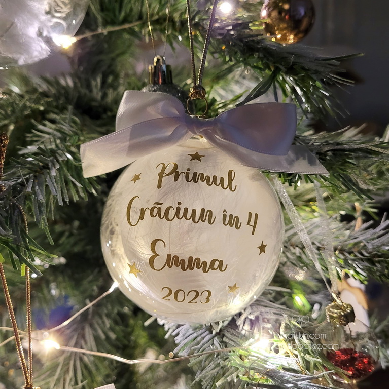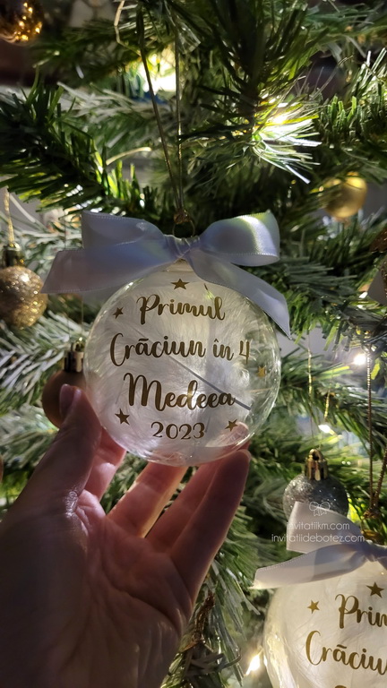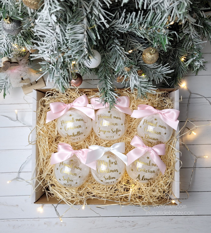 Globuri de Craciun din sticla personalizate cu nume sau cu diverse texte (Craciun fericit, Craciun magic, Primul Craciun impreuna, Primul Craciun in 2 etc).